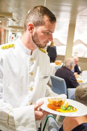La mayor parte de las comidas que se hacen en los grandes barcos marítimos suelen ser de buffet, única forma de atender a tanta gente. Y los buffet tienen ventajas, pero también inconvenientes. En los cruceros fluviales las comidas y cenas son siempre en mesa y servidas por camareros, aunque los desayunos suelen ser buffet para adaptarse al horario que más convenga a cada uno. En muchos casos, se incluyen los vinos, cervezas, refrescos, cafés... durante todo el día.